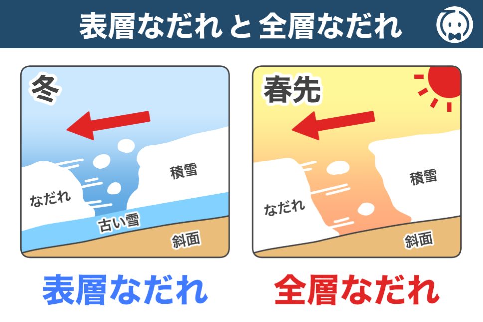 なだれには、大きく分けて 全層なだれ と 表層なだれ の2種類があります。