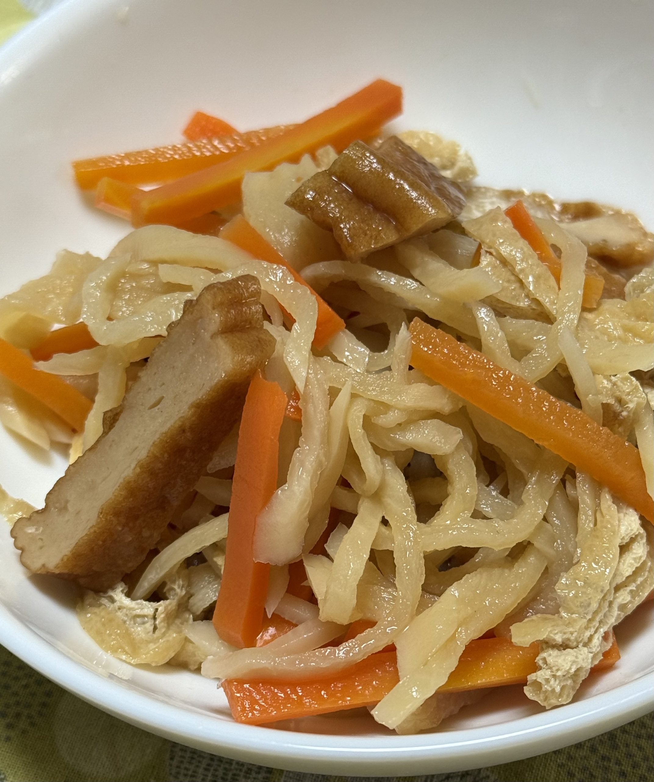 切り干し大根 今日のできごと 2025.12.09 朝食で、毎年恒例の神様特製の切り干し大根をいただきました。こういう無農薬・無添加のものをいただくのがいいですね。 ちなみに、ランチは、2回目の100円うどんでした。