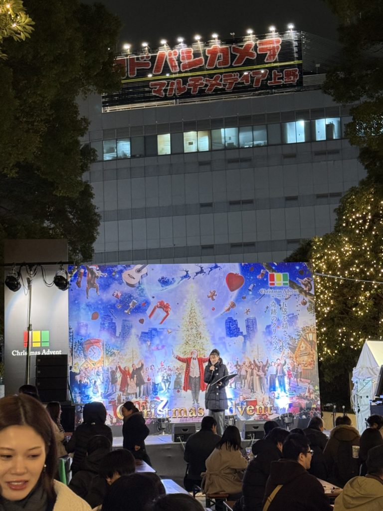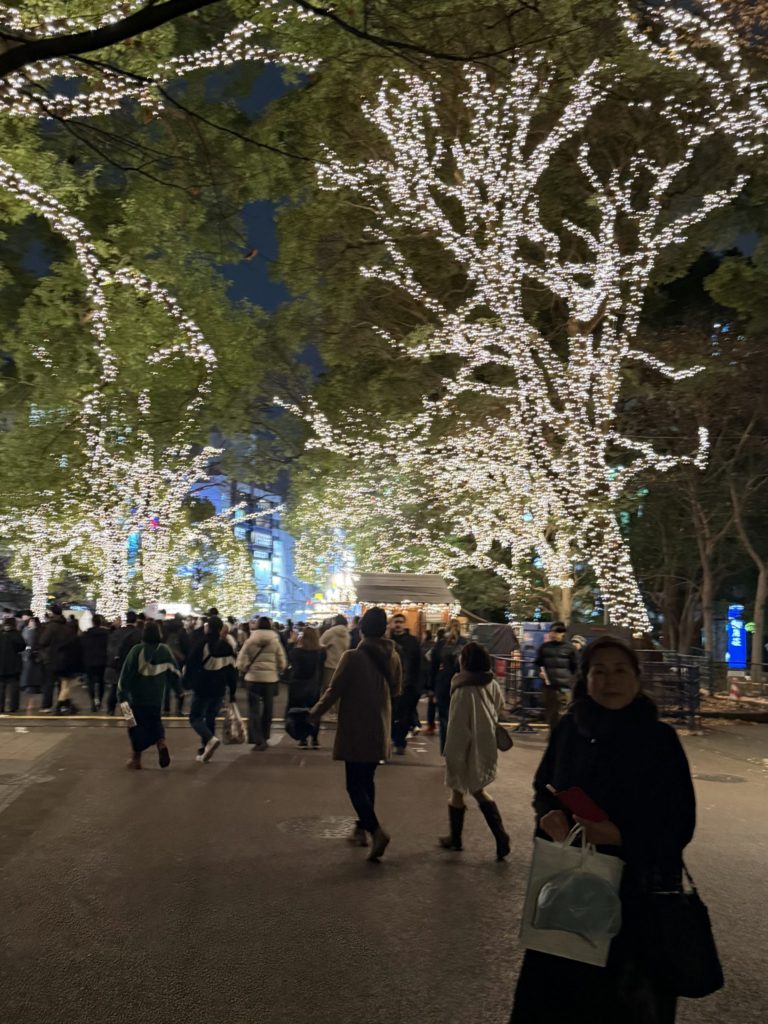 > 土曜日の上野公園、酔っているせいかイルミネーションが鮮やかみ見えました。
