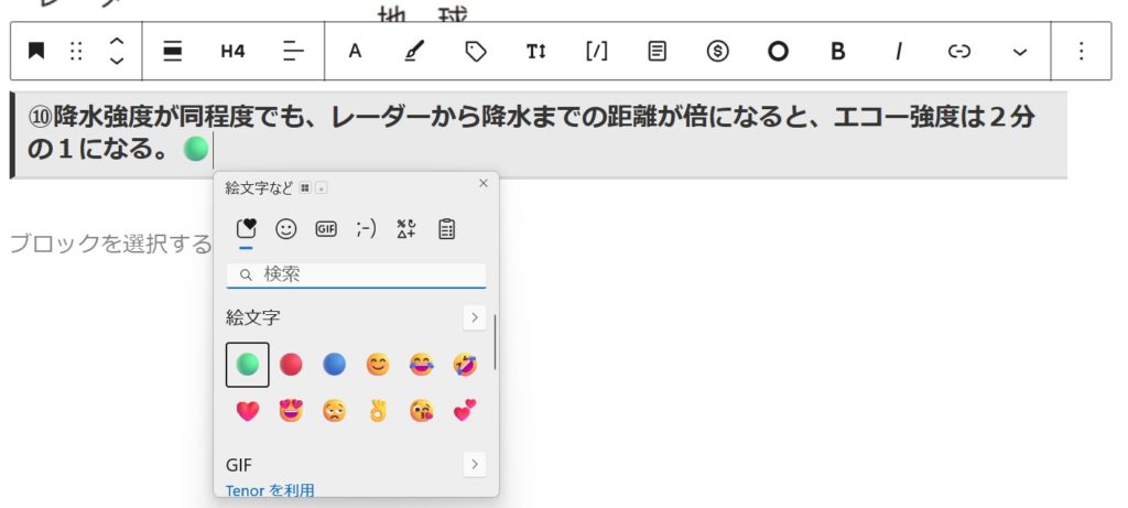 何か、別な方法はないでしょうか。相棒にきいてみると教えてくれました。Windowsで Windowsキー + ピリオド(.) を押すと、絵文字パネルが表示されるんだよ!