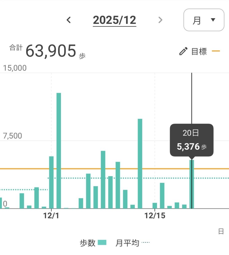 さて、グラフを見ると、12月いかに歩かなかったかが分かります。