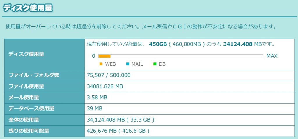 久しぶりにサーバーのデータ使用状況をチェックして驚きました。WEBデータ量が…。