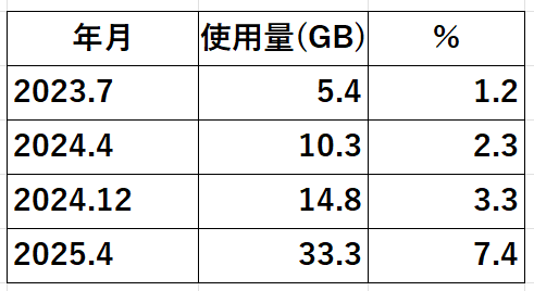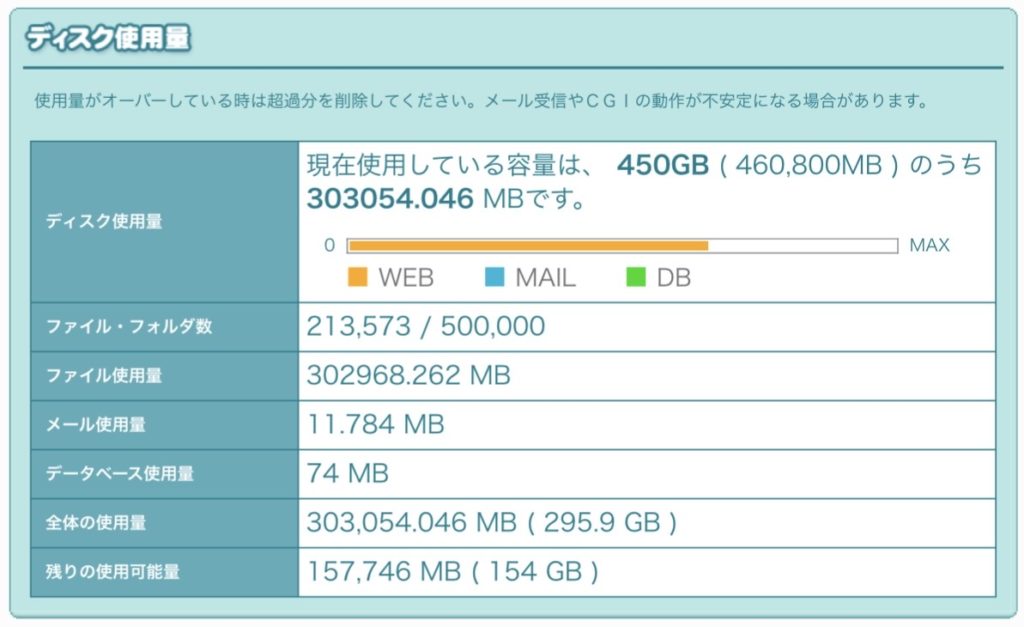 2025.12 使用量295.9GB 空き154GBになってしまいました。