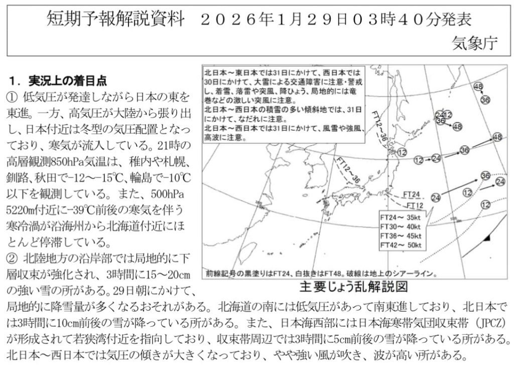 ①に、寒そうな情報が…それでASAS290000UTC天気図では?