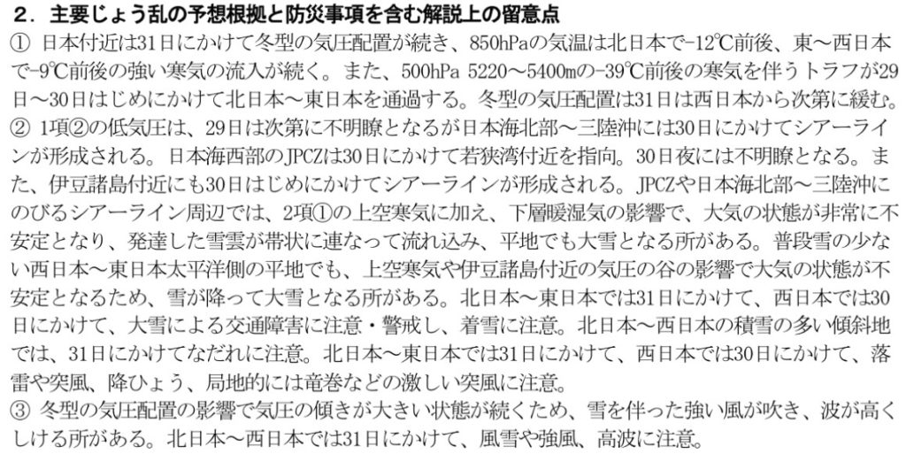 この寒さは、どこから来ているのか気になったので、短期予報解説資料を開いてみると、