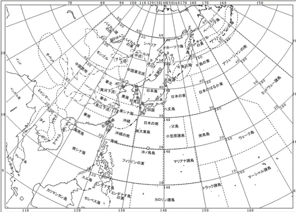 図2を見ますと、問題文にある中国東北区と華北に低気圧中心を示すLマークがあり、もう1箇所沿海州ににLマークがあることがわかります。したがって、⑩沿海州、となります。