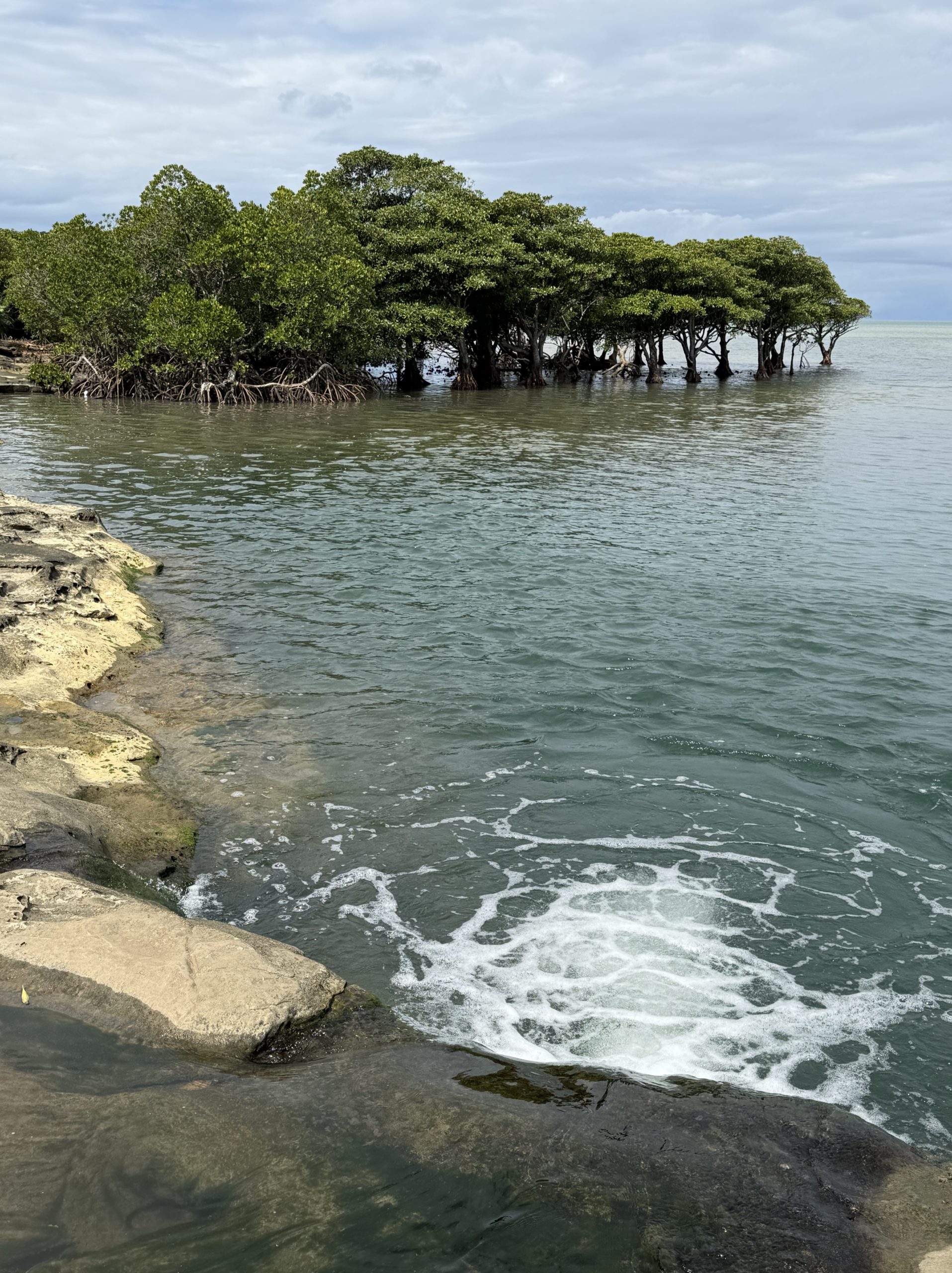 大見謝ロードパークから大見謝川に降りて行くと、珍しい地形を見ることができました。大見謝川の流れの先端が海面より少し高い位置にあるのです。こういうってなかなか見られません。