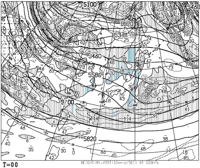 > 上のような何枚かの高層天気図を見比べながら、トラフや降水域・強風域等いろいろな気象現象を解析できるスキルを身に着けていかなければ、なりません。