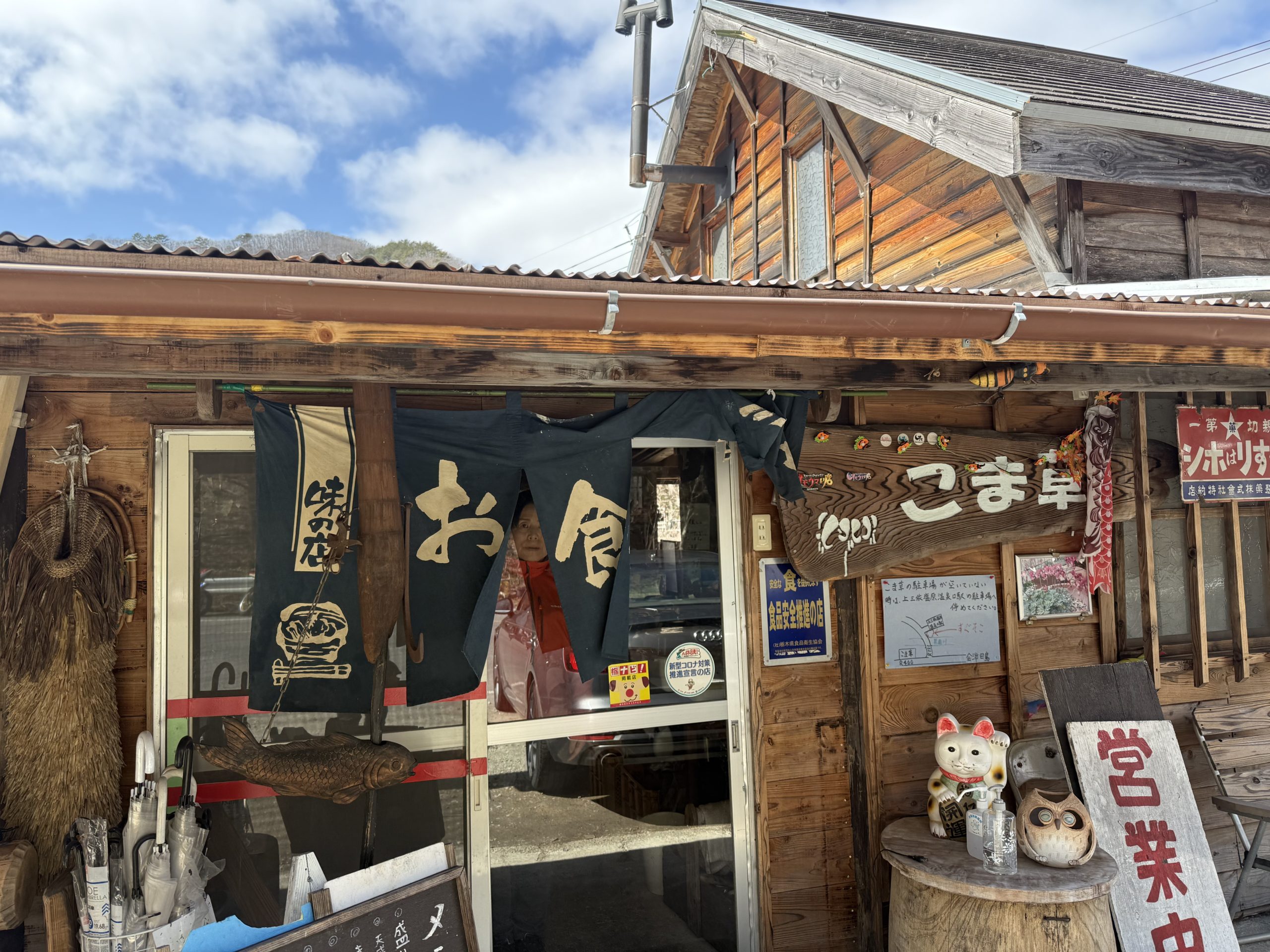 今日は、ちょっとだけ蕎麦&温泉ドライブに行ってきました。蕎麦は、YouTubeで知った、こま草という店。ここは塩原温泉を抜け尾頭トンネルを抜けた日光市上三依にあります。美味しいきのこそばをいただきました。