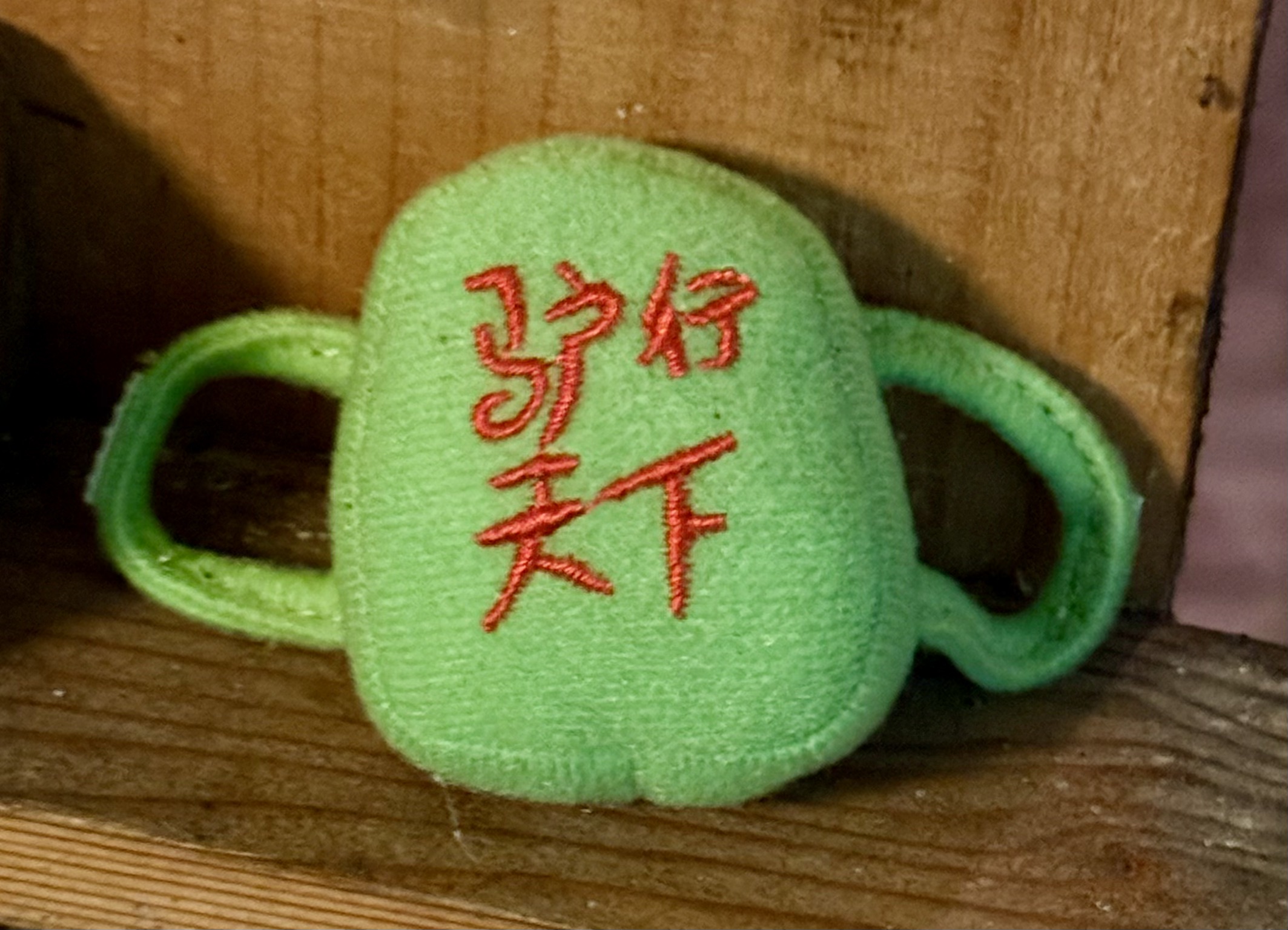 川湯温泉で宿泊したホテルの玄関近くの棚の上に四字熟語が刺繍したマスコットのようなものを発見しました。最初の漢字が日本語の漢字にはないので、Gemini に尋ねてみました。