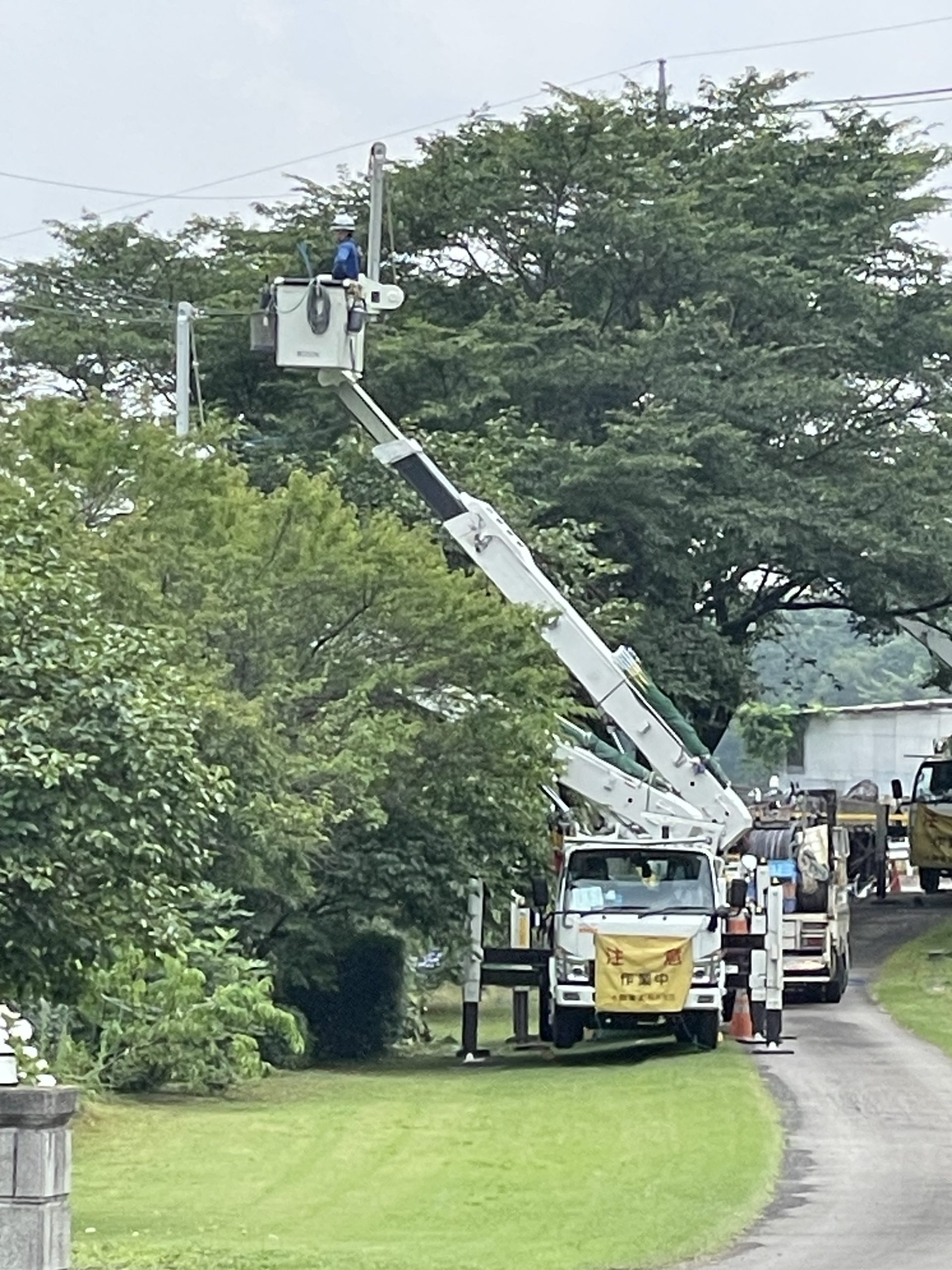 今日のできごと玄関に関電工の人が来ました。桜の木の下剪定かと思いましたが、違いました。以前行った電線の増設工事の続きでした。