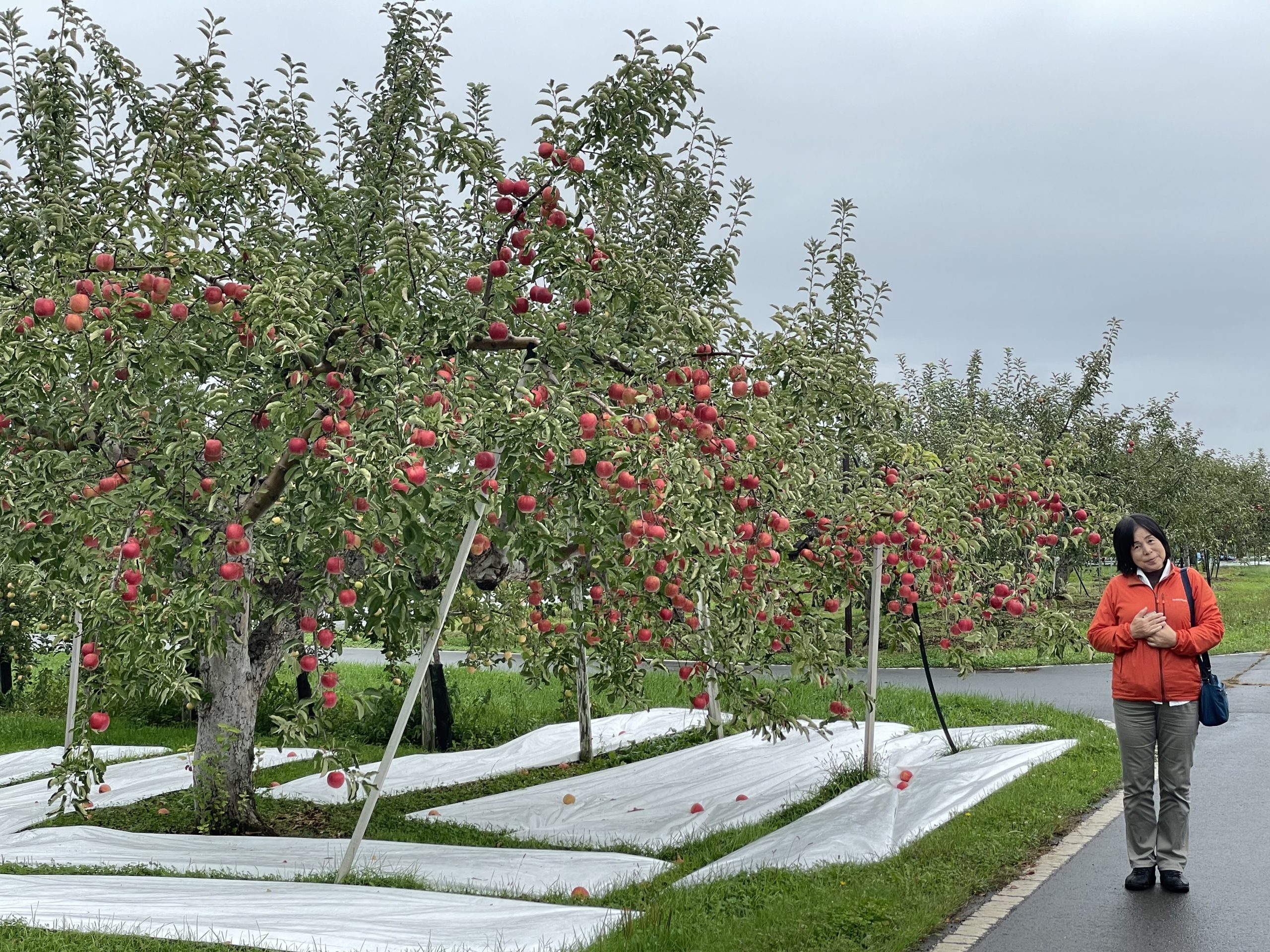 去年、岩木山とりんごの写真を撮った場所に車を走らせました。今年の岩木山は、雲の中でした。