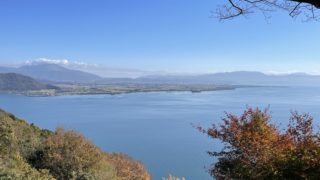 琵琶湖の北に奥琵琶湖パークウェイという道があり、つづら尾崎展望台は、その道沿いにあります。 高台なので、琵琶湖全体がよく見えるのではないか?と、思いつつやってきました。天気的にはいい感じですが…画像のとおりです。