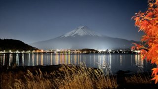 本日、河口湖もみじ祭最終日ということで、妻がライトアップの写真を撮影してきました。 宿泊予約しておいた民宿の2階の窓から、こんな夜景が撮れました。