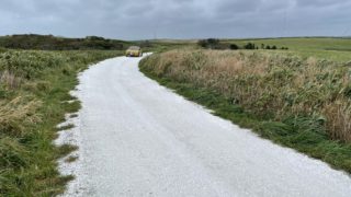 通路コンクリートに鉄筋が入りました。斜面コンクリートや防草シートの部分が見えます